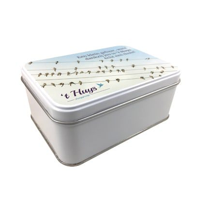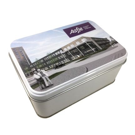 Uw klanten verwennen met iets lekkers bij de koffie of thee? Kies een lief wit chocoladeblikje met oversluitdeksel, gevuld met Kerst chocolademix. De deksel van het blikje wordt full colour bedrukt met uw bedrijfslogo en ontwerp. Het blikje is navulbaar, zo blijft u goed in beeld bij uw zakenrelaties!