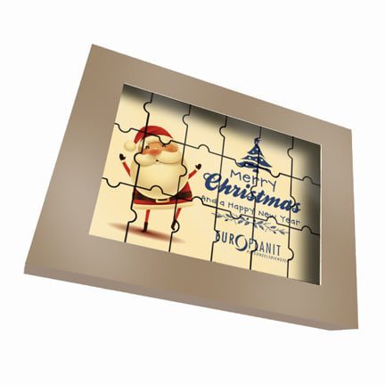 Op zoek naar een creatief & speels Kerstgeschenk dat ook nog eens heerlijk smaakt? Kies dan een chocoladepuzzel om uw klanten blij te verrassen en een Fijne Kerst te wensen! Uw klanten en relaties raken niet uitgepuzzeld! U kunt kiezen voor een standaard Kerstbedrukking of gepersonaliseerd met uw bedrijfslogo in de kleur geel.