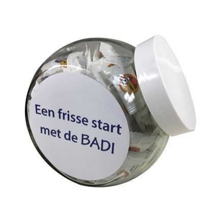 Zo’n heerlijk gevulde bokaal staat uitnodigend op de balie of de afdeling, probeer daar maar eens af te blijven. Uiteraard zijn andere vullingen mogelijk of een ander formaat Snoeppot. Kijk gerust even rond op onze website 🙂