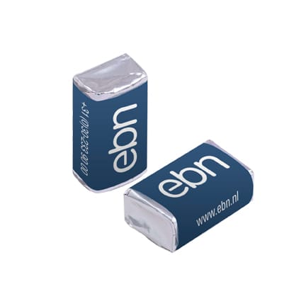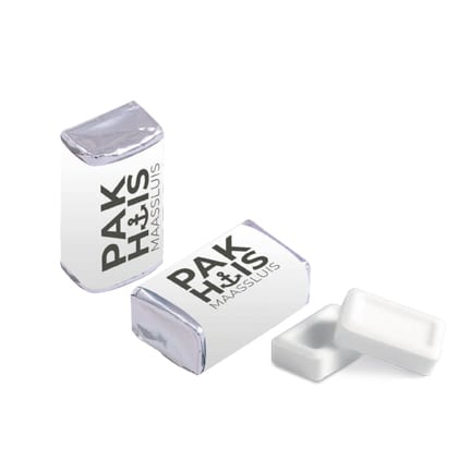 Full colour bedrukt blokje pepermunt met 6 frisse pepermuntjes. Gepersonaliseerd met uw bedrijfsontwerp en logo is dit blokje pepermunt een fris weggevertje voor bijvoorbeeld op een beurs of bijeenkomst. Daarbij is dit artikel lekker lang houdbaar, dus handig om op voorraad te houden.