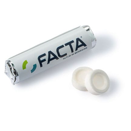 Een lief klein Pepermuntrolletje past in iedere tas of broekzak, gepersonaliseerd met uw bedrijfslogo is dit een verfrissend weggevertje! Daarbij zijn de rolletjes lang houdbaar, dus makkelijk om op voorraad te hebben voor een beurs of evenement!