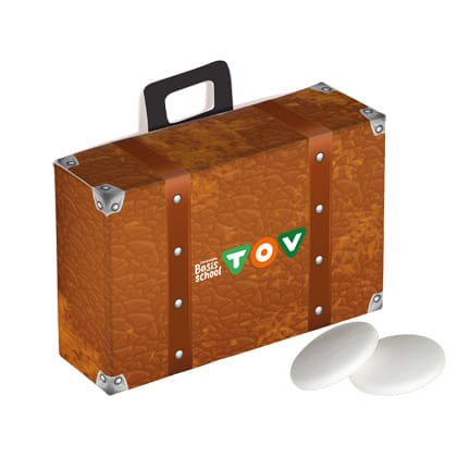 Dit frisse koffertje wordt all-over full colour bedrukt, geheel naar eigen ontwerp en gevuld met frisse pepermunt imperiales.
