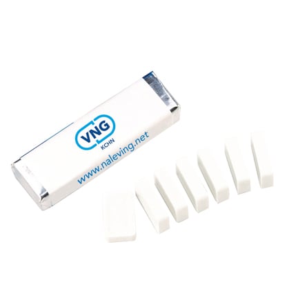 Geen rond pepermuntrolletje? Kies dan voor een vierkant (rechthoekig) ‘rolletje’ pepermunt. All-over full colour bedrukt met uw bedrijfsontwerp en logo is een pepermuntpakje een lekker fris weggevertje! Dit pepermuntrolletje is tevens te combineren met een vierkante vouwkaart. Of gebruik de pepermuntpakjes als promotiemateriaal tijdens een beurs of als vulling van uw gepersonaliseerde snoeppot of snoepblik, dat is dubbel reclame!