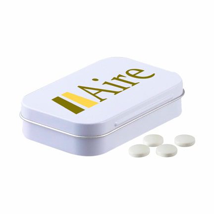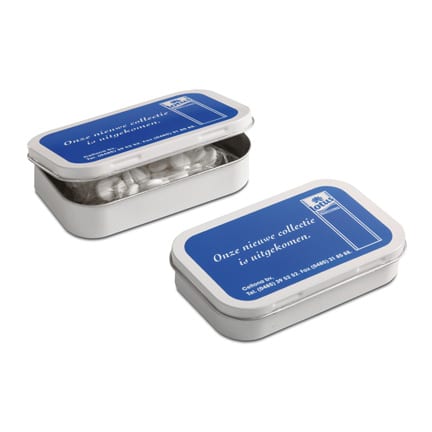 Groot pepermuntblik met bedrijfslogo