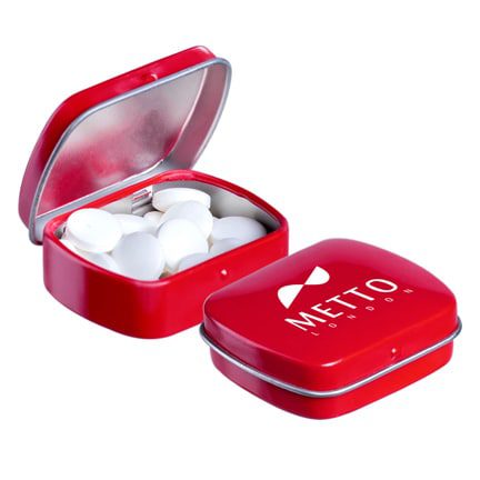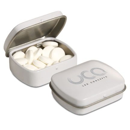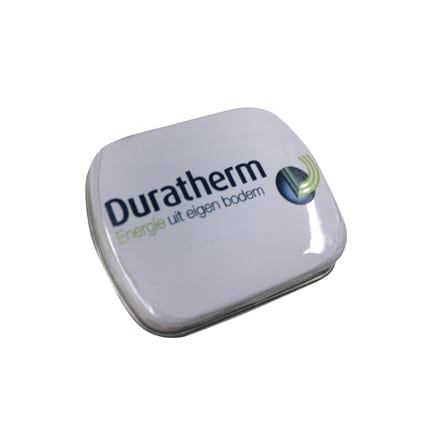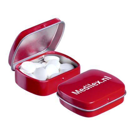 Klein scharnierblikje pepermunt met logo