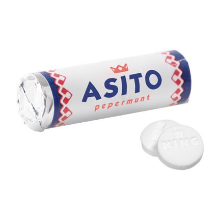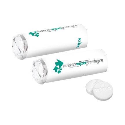 Promotierolletje met 9 frisse KING pepermuntjes. Bedrukt met uw bedrijfslogo op de wikkel is dit een lekker fris weggevertje voor op een beurs of evenement. Laat ook een verfrissende indruk achter bij uw (toekomstige) klanten & zakenrelaties 🙂
