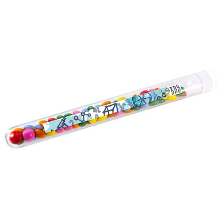 Bedrukt reageerbuisje gevuld met snoepjes