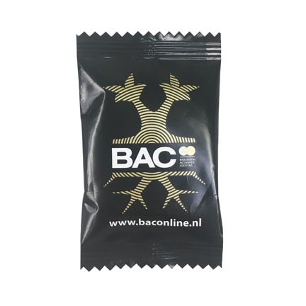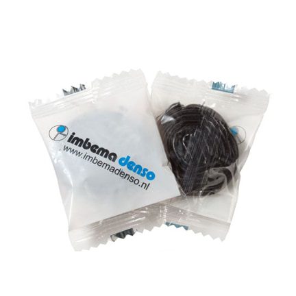 Op zoek naar een per stuk verpakt weggevertje? Kies droprollen per stuk verpakt in een gepersonaliseerde flowpack. Bedrukt met uw bedrijfslogo of reclametekst is het eindresultaat om op te eten!