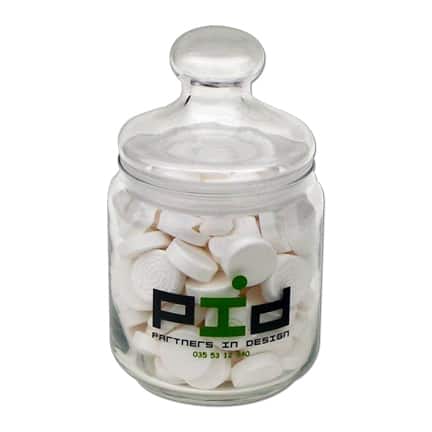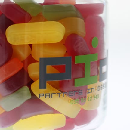 Deze snoeppot is prachtig met rechtstreekse bedrukking en zal nog lang bewaard blijven door uw klanten!